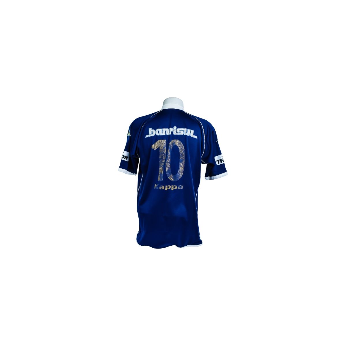 A camisa azul comemorativa do Grêmio, fabricada pela Kappa, é um modelo especial lançado no início dos anos 2000 em celebração ao centenário do clube, marcando os 100 anos do Tricolor Gaúcho entre 1903 e 2003. Com design exclusivo e caráter histórico, a peça simboliza tradição, conquistas e identidade gremista.