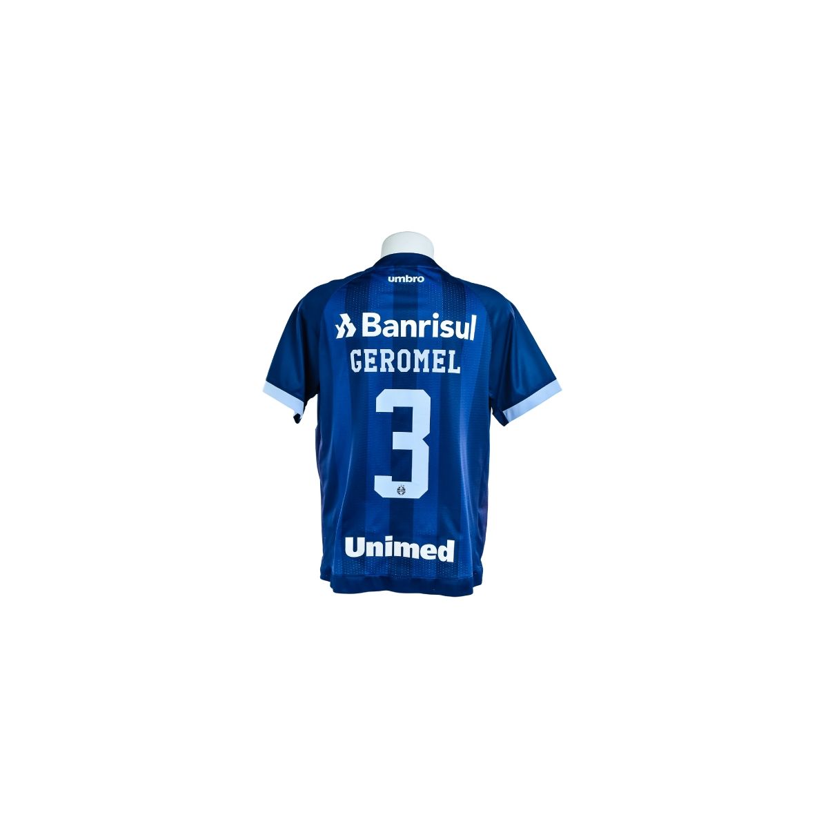 Nas costas, aparecem o nome GEROMEL e o número #3 em branco, com excelente leitura e aplicação limpa. A camisa está diretamente associada a um dos maiores ídolos defensivos da história recente do clube, símbolo de liderança, regularidade e títulos.