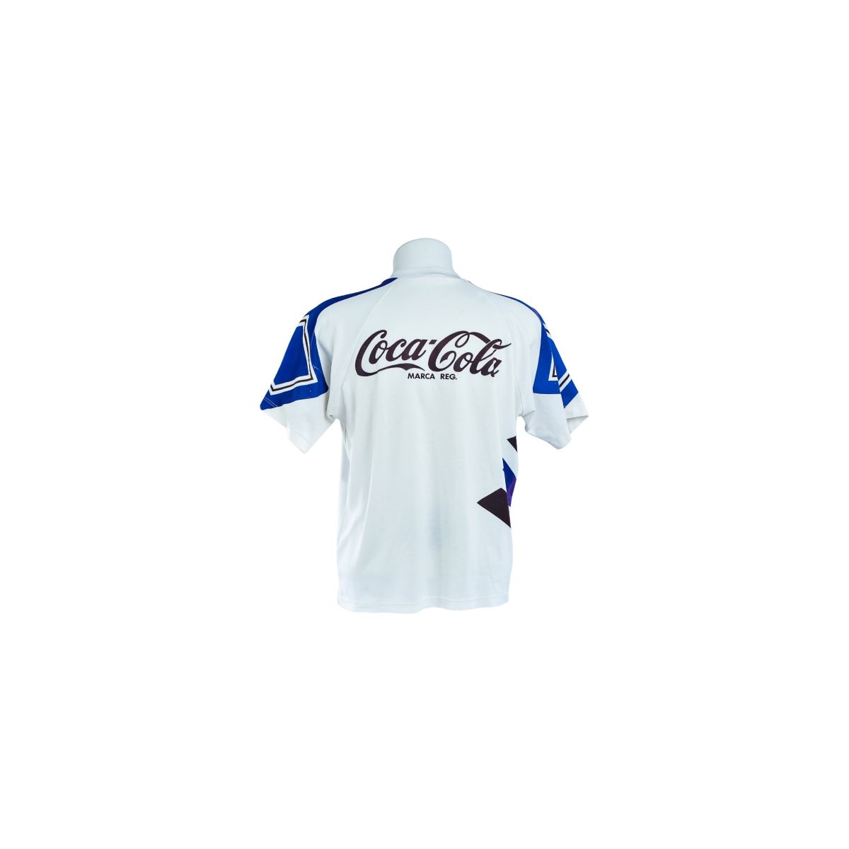 Na parte traseira, o patrocínio Coca-Cola aparece novamente em evidência, sem numeração ou nome de jogador, o que indica um modelo padrão de jogo ou aquecimento utilizado em partidas oficiais e treinamentos do período.