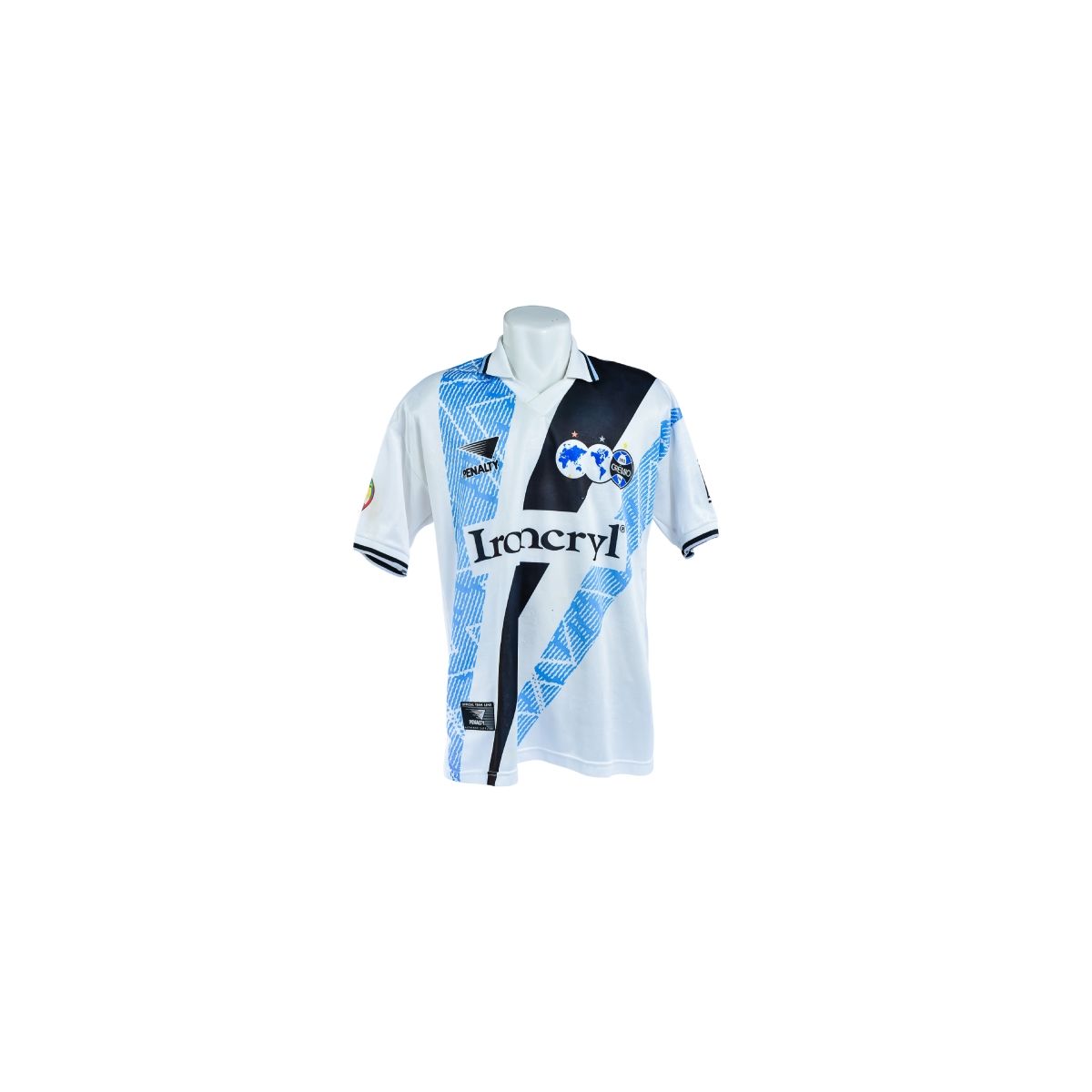 A camisa branca do Grêmio, fabricada pela Penalty, é um modelo emblemático do início da década de 1990, período marcado por ousadia gráfica e forte identidade visual nos uniformes do futebol brasileiro. Com design arrojado e estética característica da época, a peça combina tradição e inovação em um visual marcante.