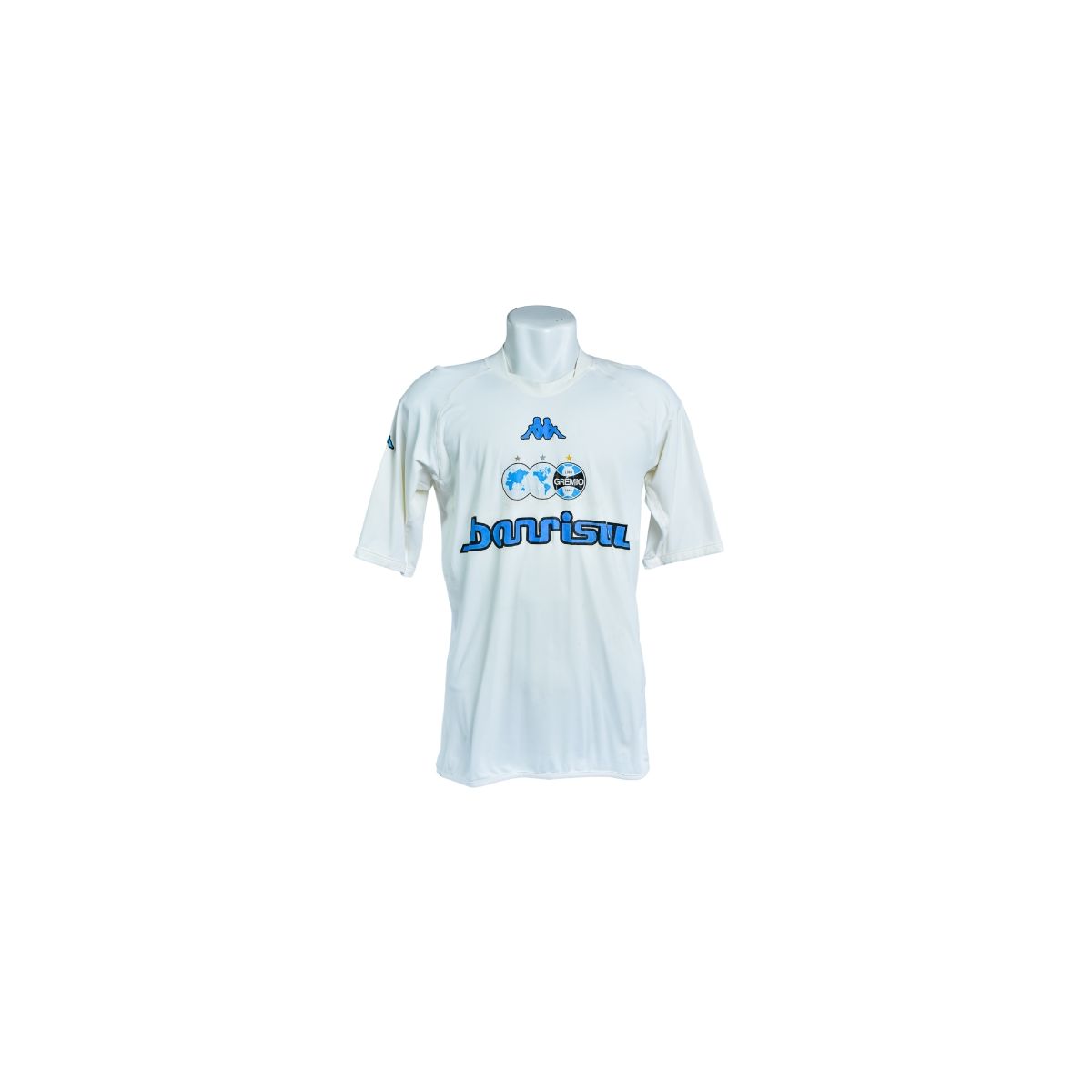 A camisa branca do Grêmio, fabricada pela Kappa, é um modelo especial ligado ao período comemorativo do centenário do clube (1903–2003). Com visual limpo e elegante, a peça simboliza a tradição, a história e a grandeza do Tricolor Gaúcho em seus 100 anos de trajetória no futebol brasileiro e internacional.