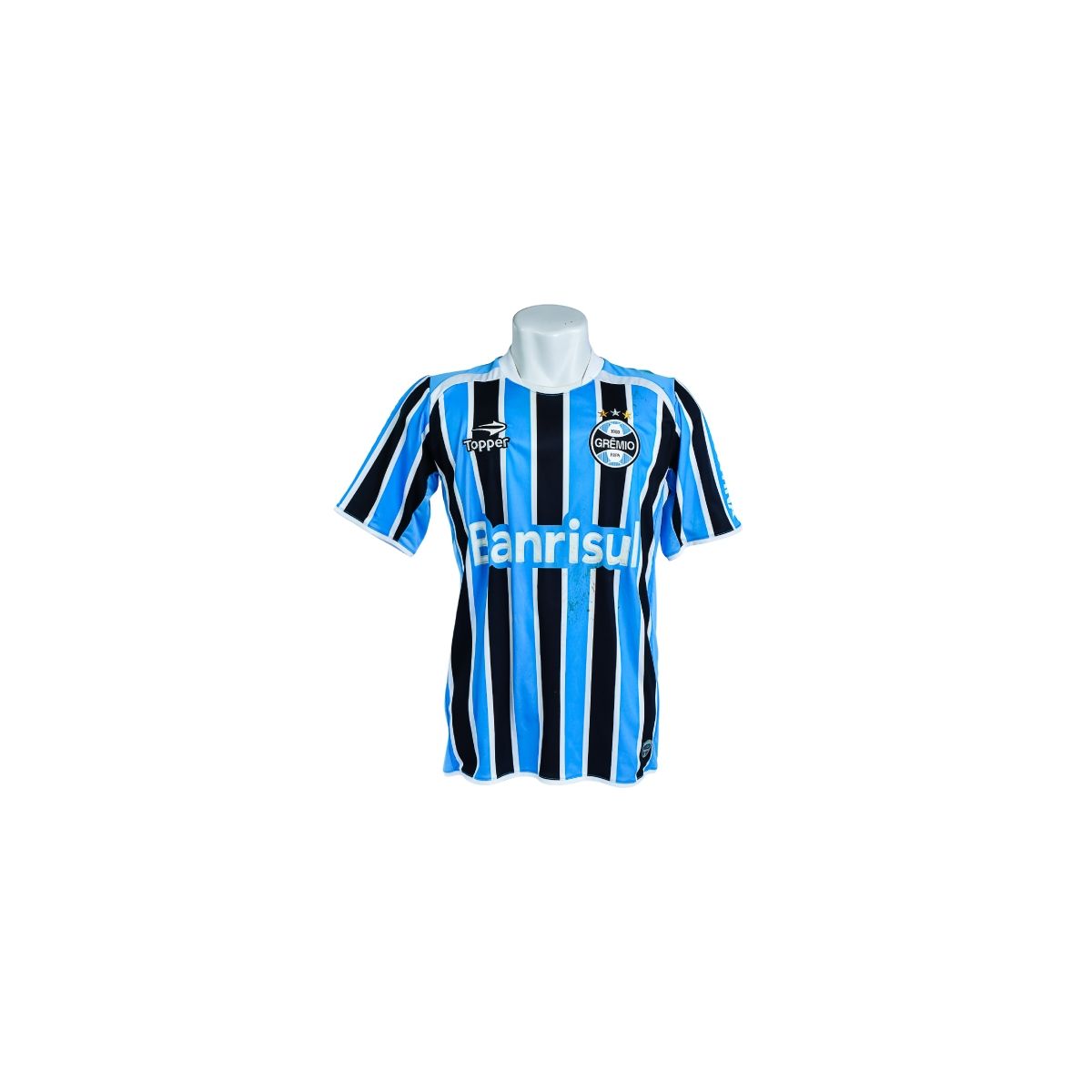 A camisa listrada do Grêmio, fabricada pela Topper, é um modelo marcante da década de 2010, período em que o clube utilizou uniformes com identidade visual forte e moderna. Com design tradicional aliado a tecnologia esportiva, a peça representa uma fase importante do Tricolor Gaúcho em competições nacionais e internacionais.