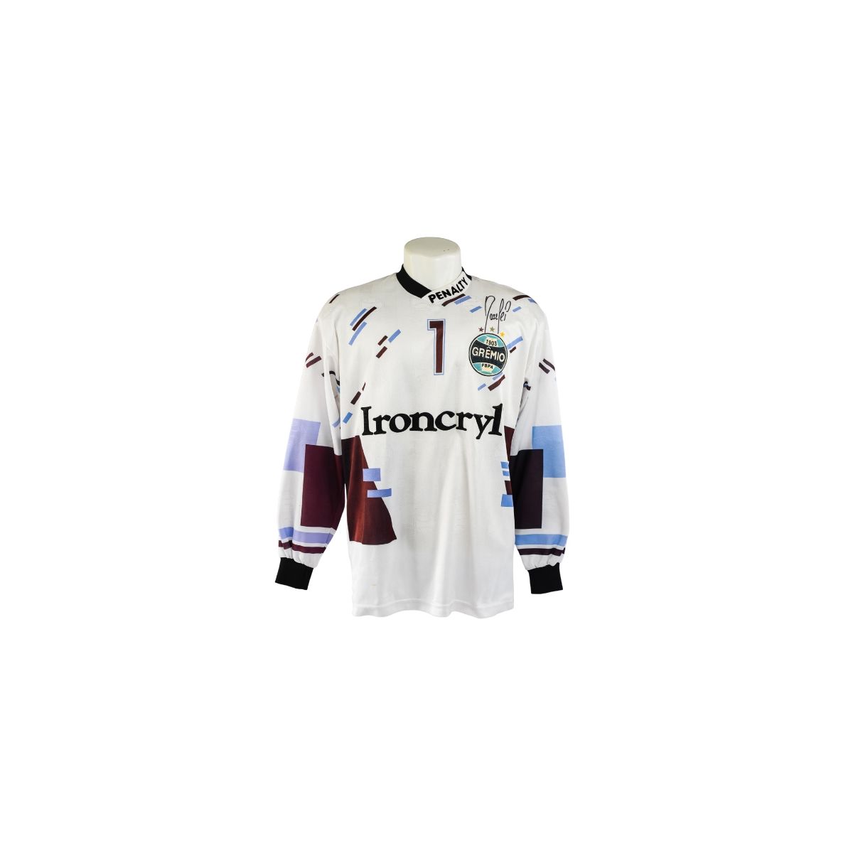 Com mangas longas acolchoadas , gola preta em "V" com o nome "Penalty" em destaque e o escudo bordado do Grêmio com duas estrelas douradas , essa peça é símbolo de uma era de transição: o início da união de Danrlei como ídolo eterno da torcida tricolor.