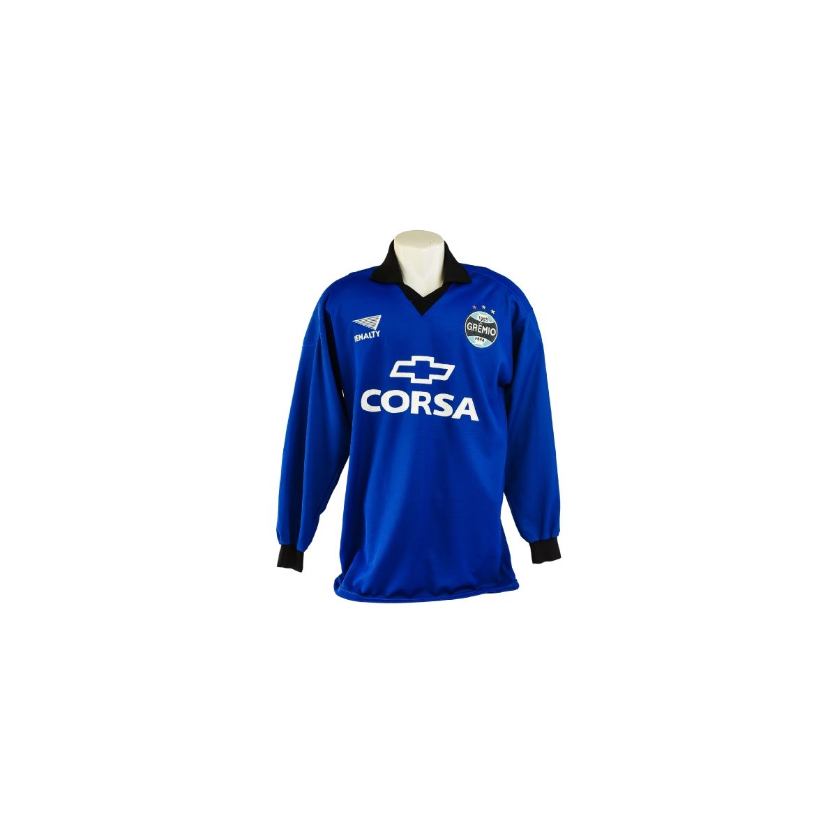 Essa camisa é uma das mais queridas pelos torcedores por sua sobriedade e ligação direta com a Libertadores de 1995 , competição em que o Grêmio declarou a garra e a força que definem o clube. O azul intenso e o escudo bordado fazem desse modelo um verdadeiro símbolo da era Danrlei e da supremacia tricolor nos anos 90.