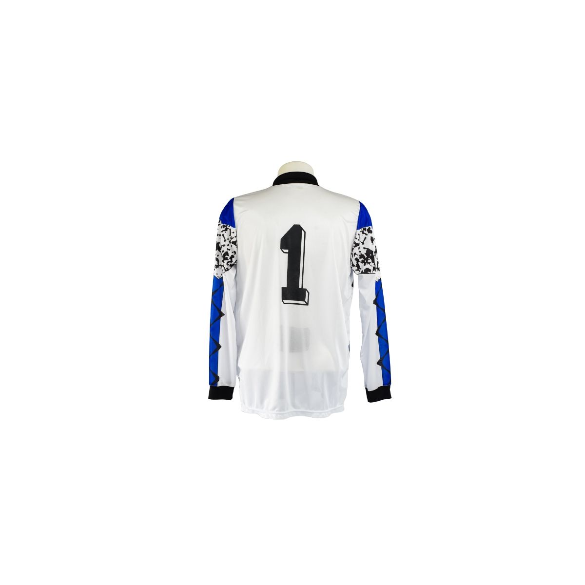A camisa de goleiro do Grêmio Foot-Ball Porto Alegrense de 1995 , fabricada pela Puma , é uma das mais marcantes e admiradas da história do clube. O design arrojado, com padrões geométricos em azul, preto e branco , reflete perfeitamente o estilo ousado dos anos 90. A combinação das figuras triangulares e do detalhe pixelado na região dos ombros tornou esse uniforme uma verdadeira obra de arte dos gramados.