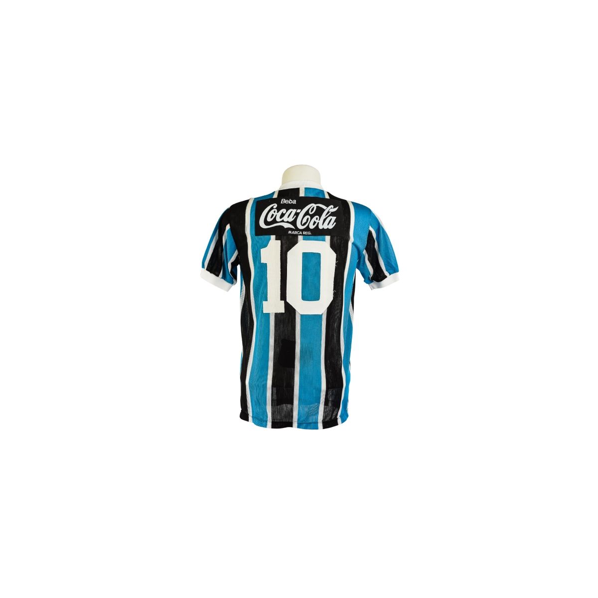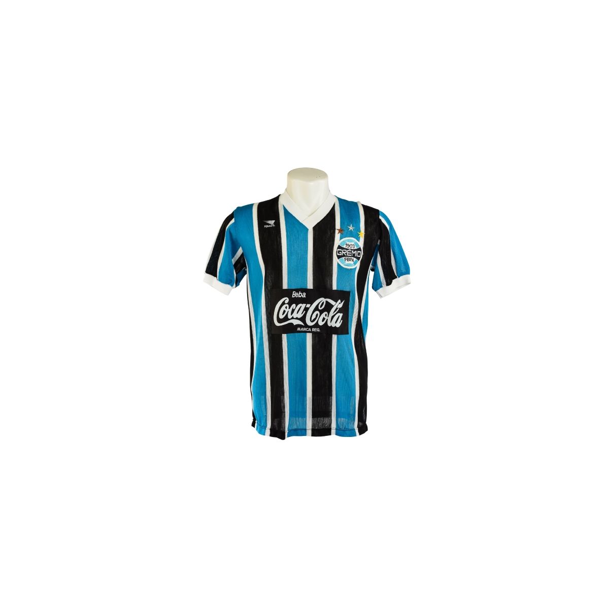 A camisa tricolor do Grêmio Foot-Ball Porto Alegrense de 1989 , fabricada pela Penalty , é um dos mantos mais emblemáticos da década de 1980. O modelo ficou eternizado por trazer o icônico patrocínio da Coca-Cola , símbolo máximo de marketing esportivo na época, aliado às tradicionais listras verticais em azul, preto e branco.