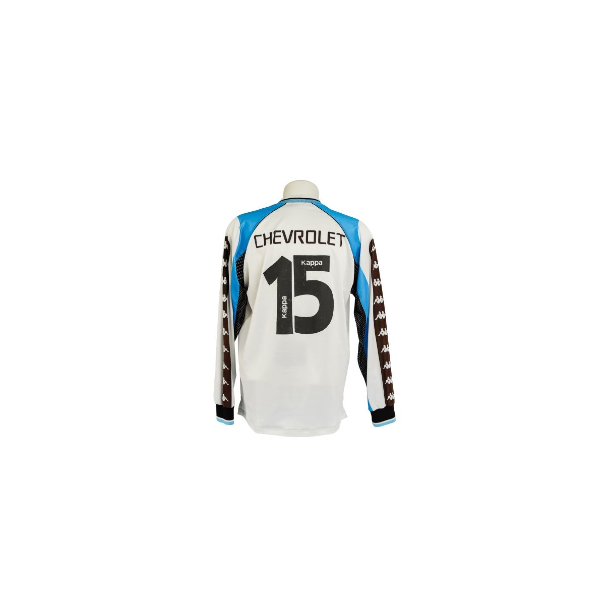 A camisa traz o número 15 nas costas, com o nome “CHEVROLET” acima e a marca Kappa abaixo, em uma tipografia moderna e robusta. O número identifica jogadores que atuavam como meio-campistas ou defensores nas partidas em que o uniforme alternativo foi utilizado.