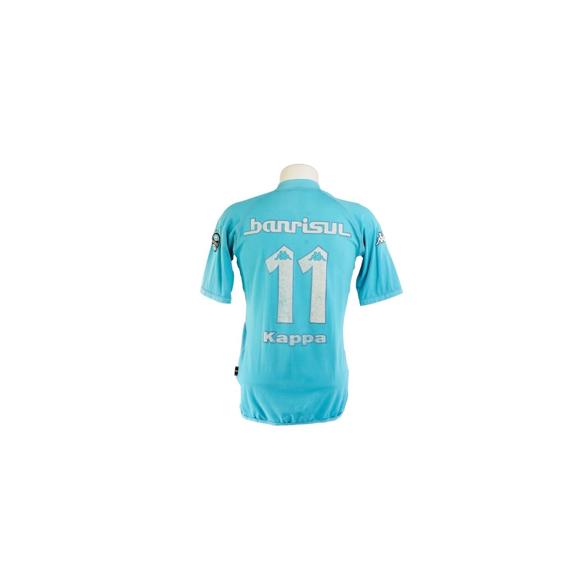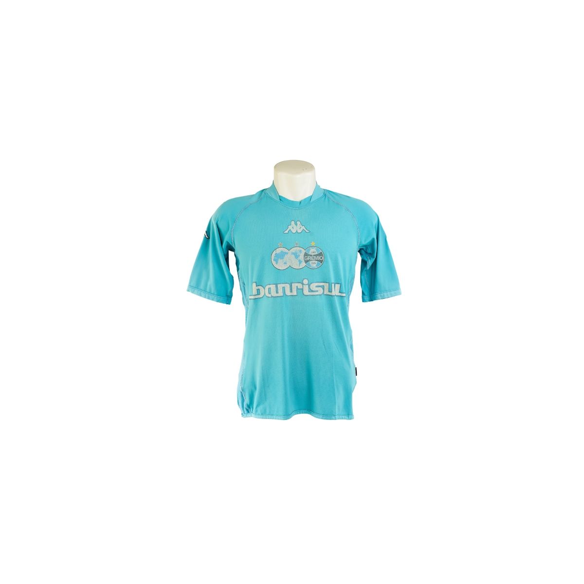 O layout é limpo e elegante, trazendo o escudo do Grêmio bordado no peito e o logotipo da Kappa centralizado acima, acompanhado do patrocínio Banrisul em branco. A gola anatômica e as mangas com corte apenas reforçam o estilo esportivo da linha Kappa, conhecido pelo ajuste ao corpo.