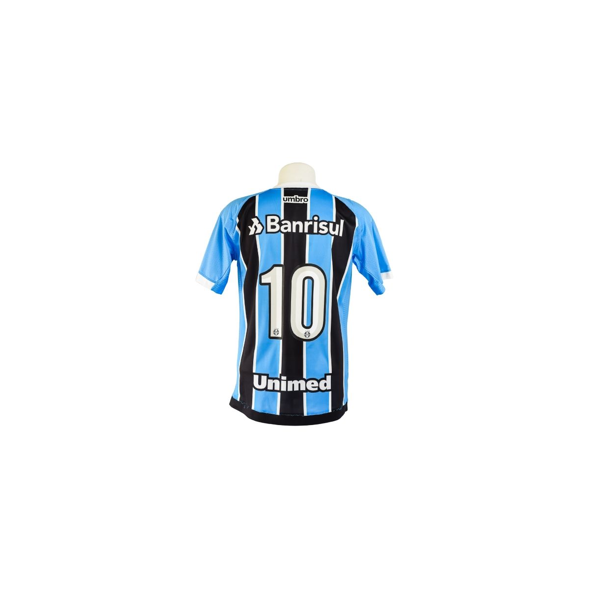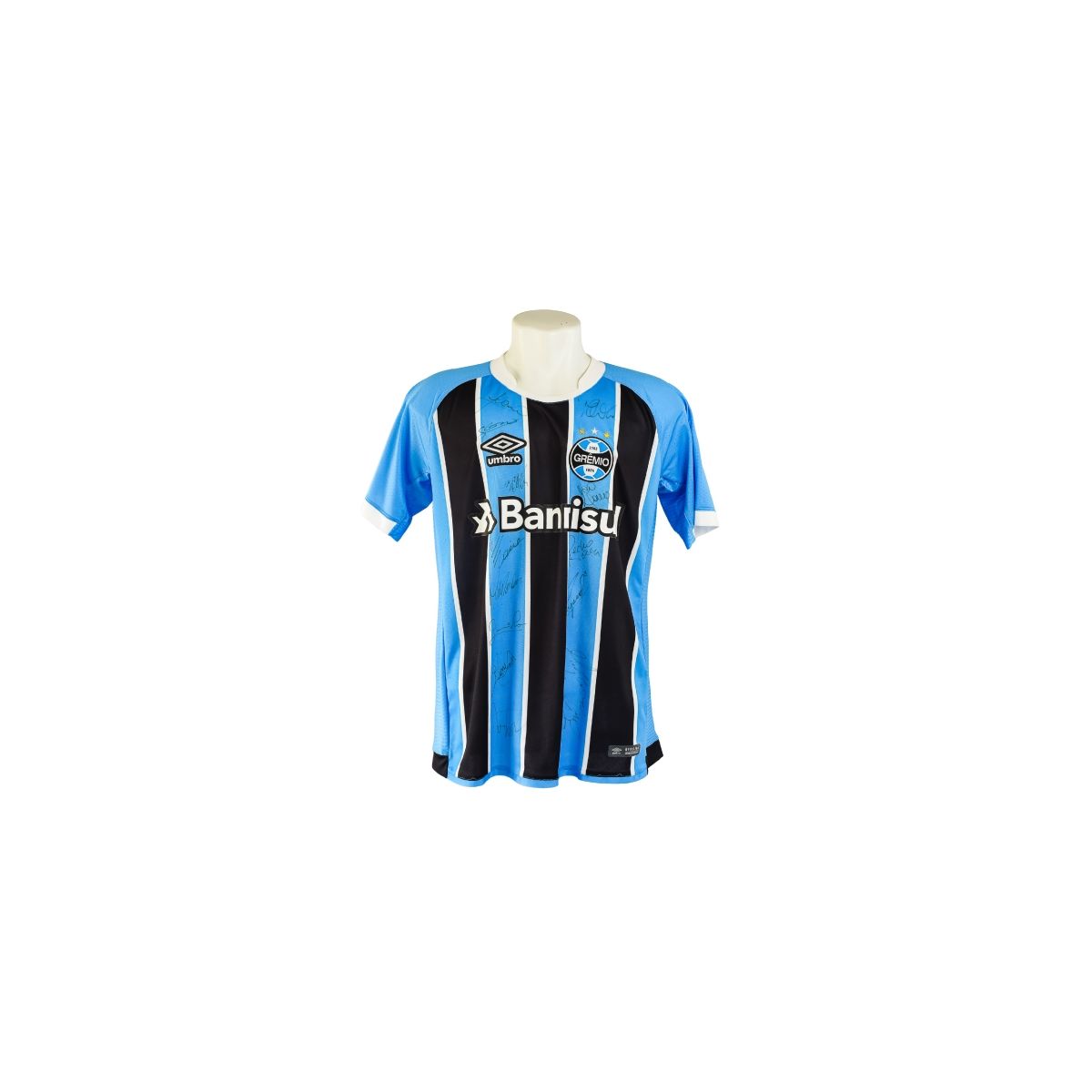 Essa versão traz o patrocínio Banrisul no peito e Unimed na parte inferior das costas, simbolizando a identidade visual do Grêmio em seu retorno às grandes conquistas nacionais. O exemplar é autografado por todo o elenco campeão da Copa do Brasil de 2016 , título que encerrou um jejum de 15 anos sem troféus de expressão nacional e deu início a uma nova era vitoriosa.