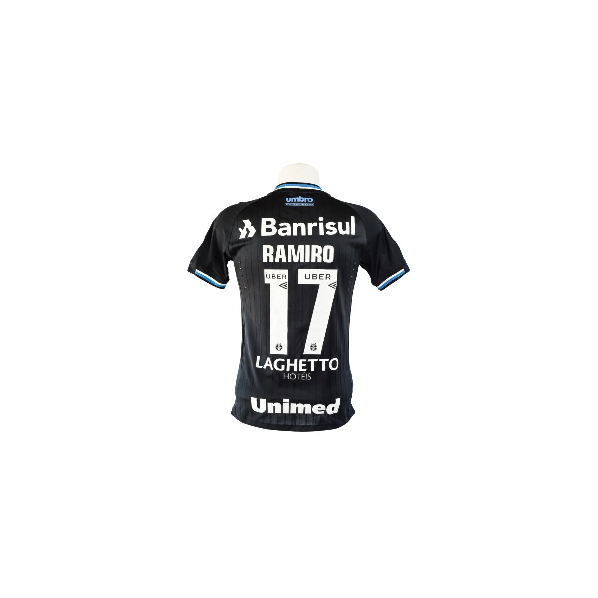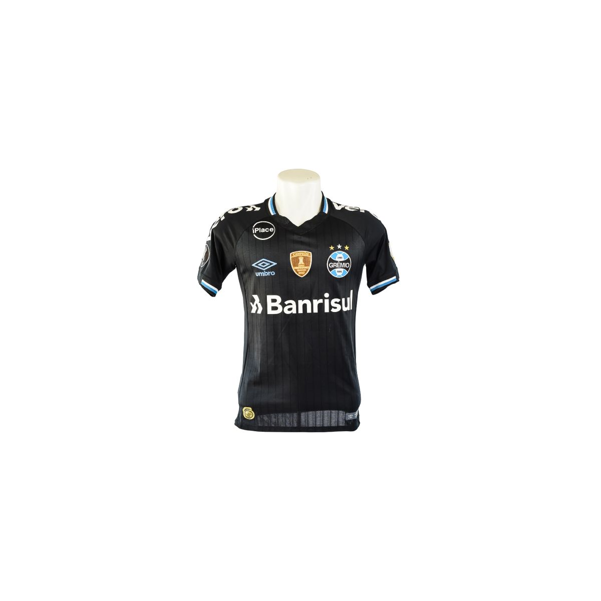 A Umbro lançou esta camisa preta em 2018 como parte da linha comemorativa do tricampeonato da Copa Libertadores da América, conquistada em 2017. O modelo traz o patch dourado do “Campeão da América 2017” no peito e mantém o visual elegante, com listras discretas em relevo e detalhes em azul celeste e branco na gola e nas mangas.