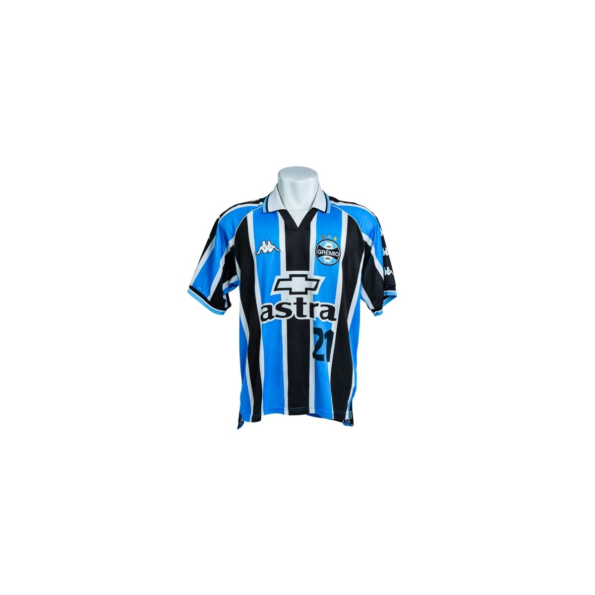 Camisas do Grêmio produzidas pela Kappa com patrocínios como Astra e Chevrolet são muito valorizadas por colecionadores, pois simbolizam uma era marcante do clube. O design listrado aliado à numeração #21 torna este modelo uma peça representativa da identidade e da história do Tricolor Gaúcho.