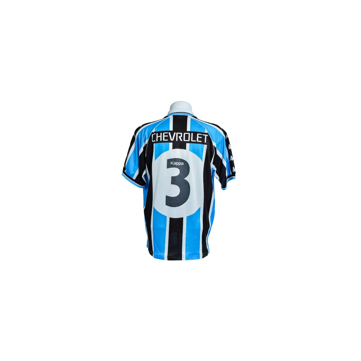 A camisa listrada do Grêmio, fabricada pela Kappa, é um modelo clássico do início dos anos 2000, período marcado pela forte identidade visual do clube e pela parceria com a Chevrolet como patrocinadora master. Com design tradicional e imponente, a peça representa uma fase emblemática do Tricolor Gaúcho em competições nacionais e internacionais.