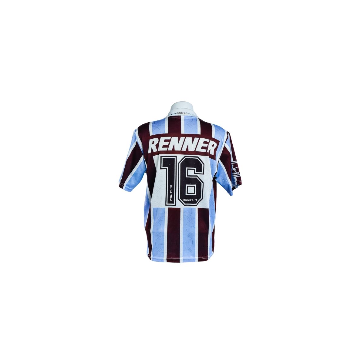 As camisas do Grêmio produzidas pela Penalty com patrocínio Renner são bastante valorizadas por colecionadores, pois representam um período de grande identidade visual do clube. A combinação da gola polo, listras verticais tradicionais e numeração aplicada em material original torna este modelo uma peça emblemática da história recente do Grêmio.