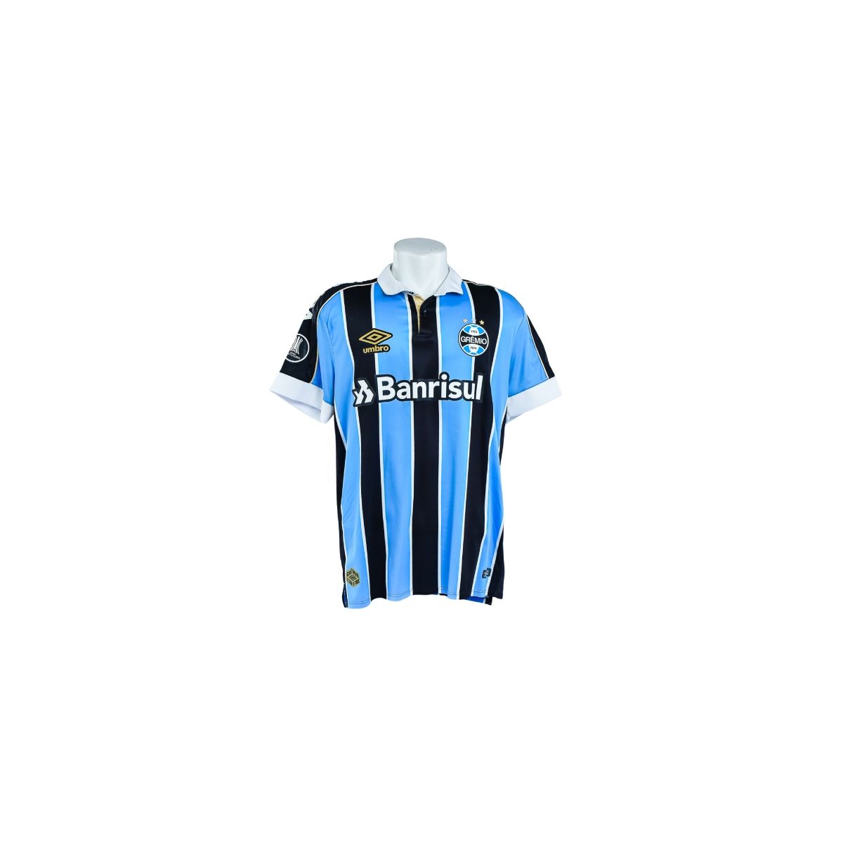 A camisa tricolor do Grêmio, fabricada pela Umbro, representa uma fase recente e marcante do clube, caracterizada por competitividade, solidez defensiva e forte presença internacional. Com design moderno e imponente, o modelo mantém viva a tradição gremista por meio das clássicas listras verticais em azul, preto e branco, combinadas a elementos gráficos contemporâneos.