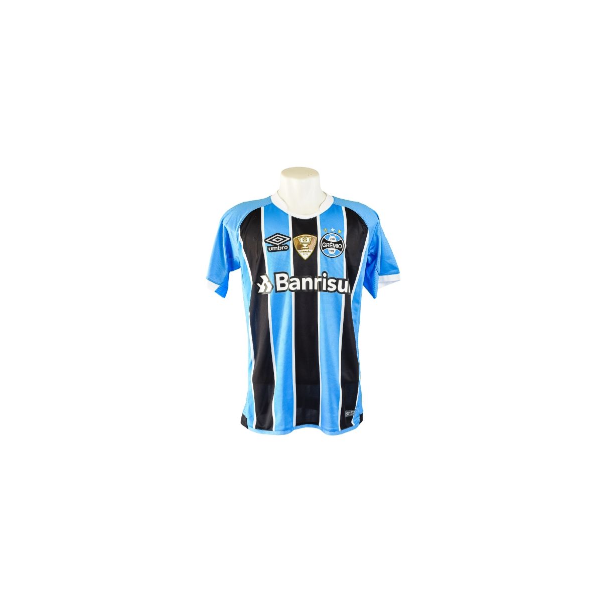 A camisa tricolor de 2016, fabricada pela Umbro, é uma das mais emblemáticas da era moderna do Grêmio. Lançada especialmente para comemorar o título do Campeonato Gaúcho de 2016 , o modelo traz o escudo dourado de campeão estadual no centro do peito, um detalhe que a diferença e a torna conveniente.