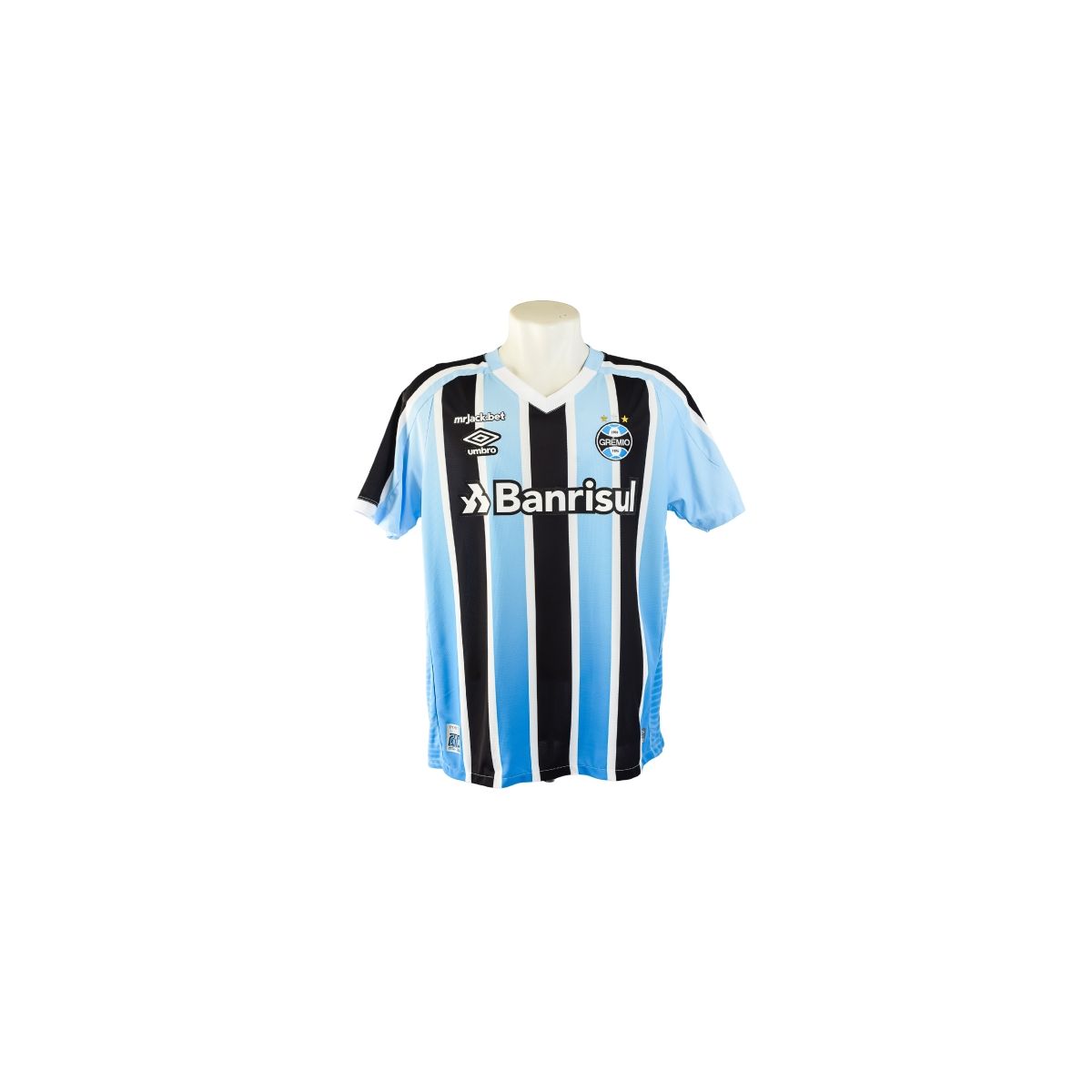 A camisa tricolor de 2023, assinada pela Umbro, marcou o retorno do Grêmio à elite do futebol brasileiro, simbolizando uma nova fase de construção e confiança. O modelo resgata a tradição das faixas verticais em azul, preto e branco , com o mesmo espírito que acompanha o clube desde 1903.